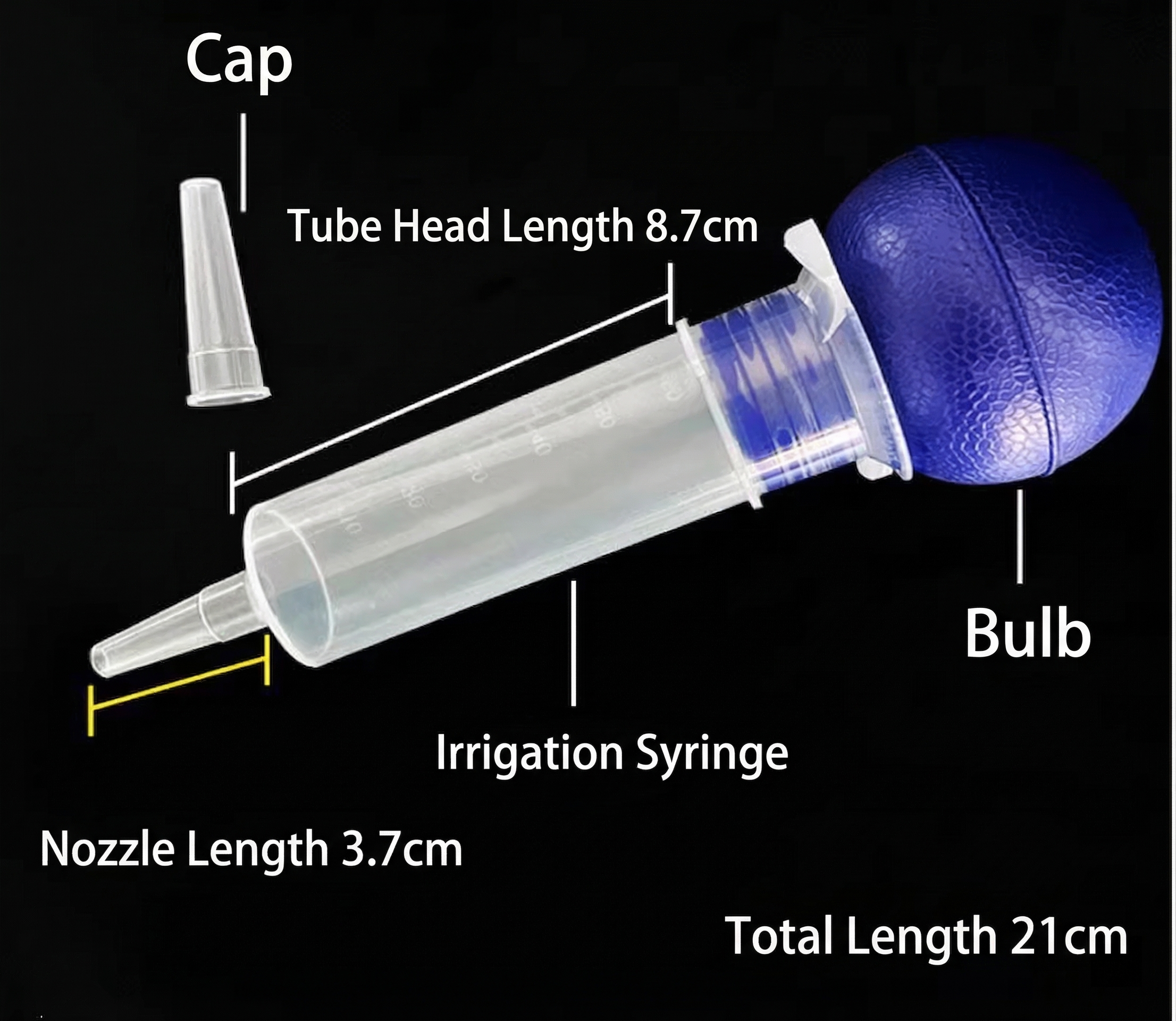·Bulb Syringe for Ear Irrigation:Gently cleans earwax and secretions. When performing ear irrigation with a bulb syringe, the low-pressure water flow avoids damaging the eardrum, making it safer than cotton swabs and suitable for post-operative care.